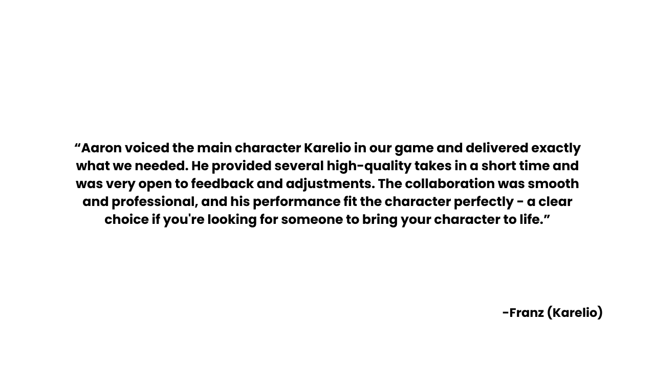 | Karelio & the Monster of Marenda (Video Game) | Karelio (Lead Role) & Various Sound Design | 2023 |
